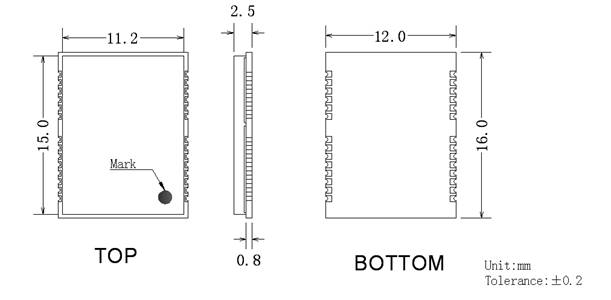 dimension:12.0mmX16.0mmX2.5mm;