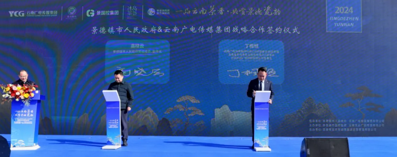 12月29日上午,由景德鎮市人民政府、云南廣電傳媒集團有限公司指導,景德鎮市國控集團、云南天運廣潤傳媒有限公司主辦,景德鎮官方陶瓷旗艦店運營(yíng)管理有限公司承辦的“‘一品云南茶香·共賞景德瓷韻’江西省景德鎮市人民政府與云南廣電傳媒集團有限公司戰略合作暨產(chǎn)業(yè)聯(lián)盟簽約儀式”于景德鎮陶瓷官方旗艦店高嶺大道店舉行。